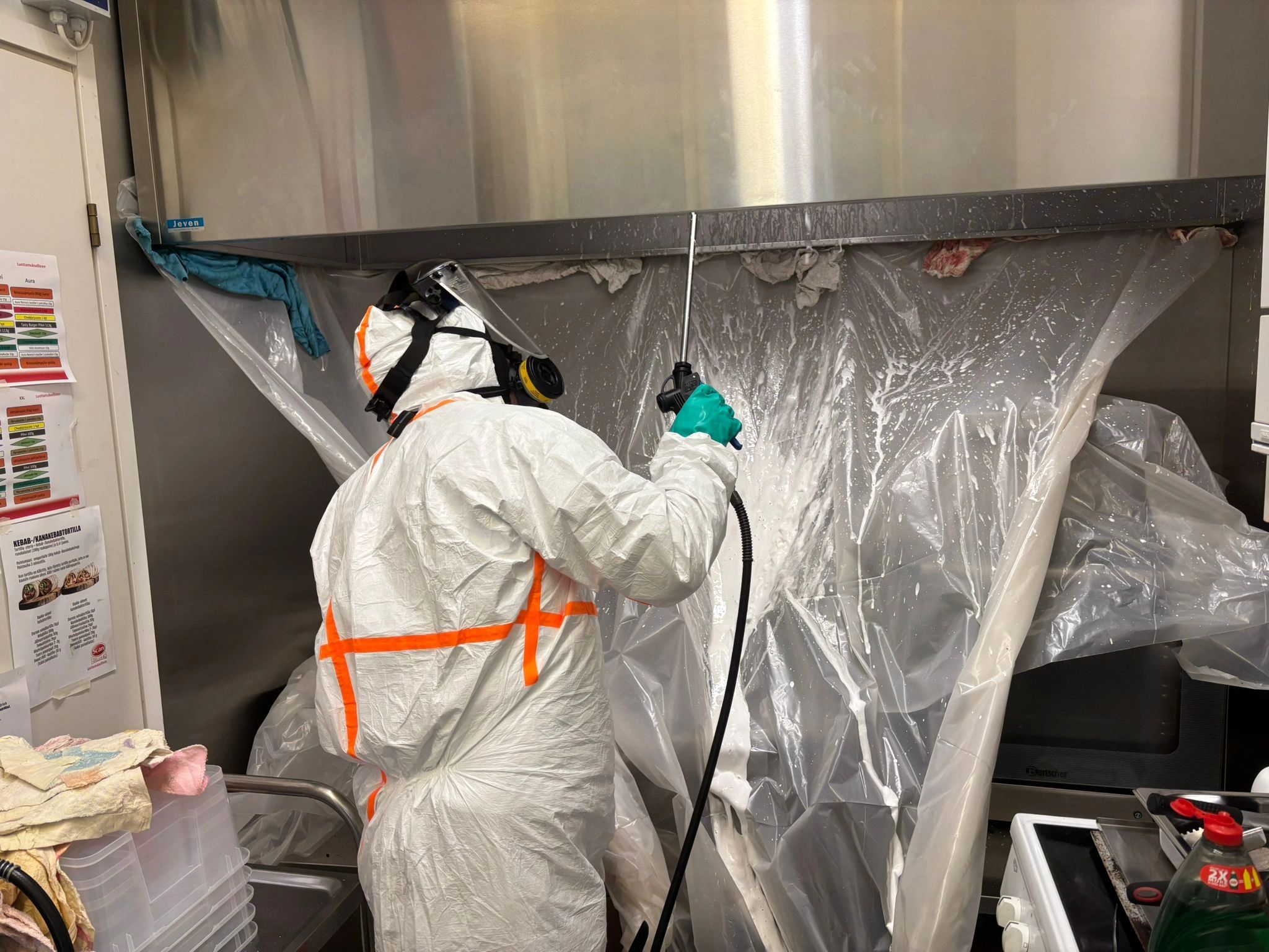 Käyttämämme voimakkaasti vaahtoava, biologisesti hajoava ja materiaaliturvallinen puhdistusaine irrottaa jopa vuosien aikana kertynyttä paksua rasvaa ilman vaurioita kanavistolle.